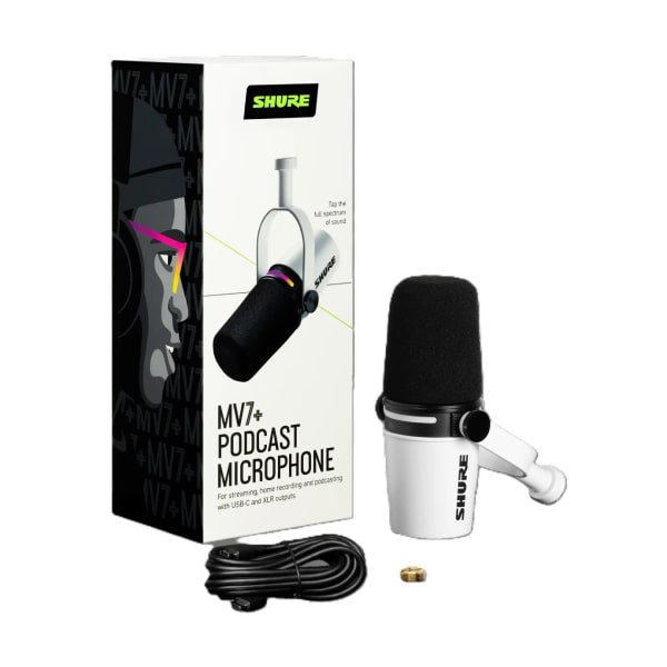 - ميكروفون MV7+ باللون الأبيض
