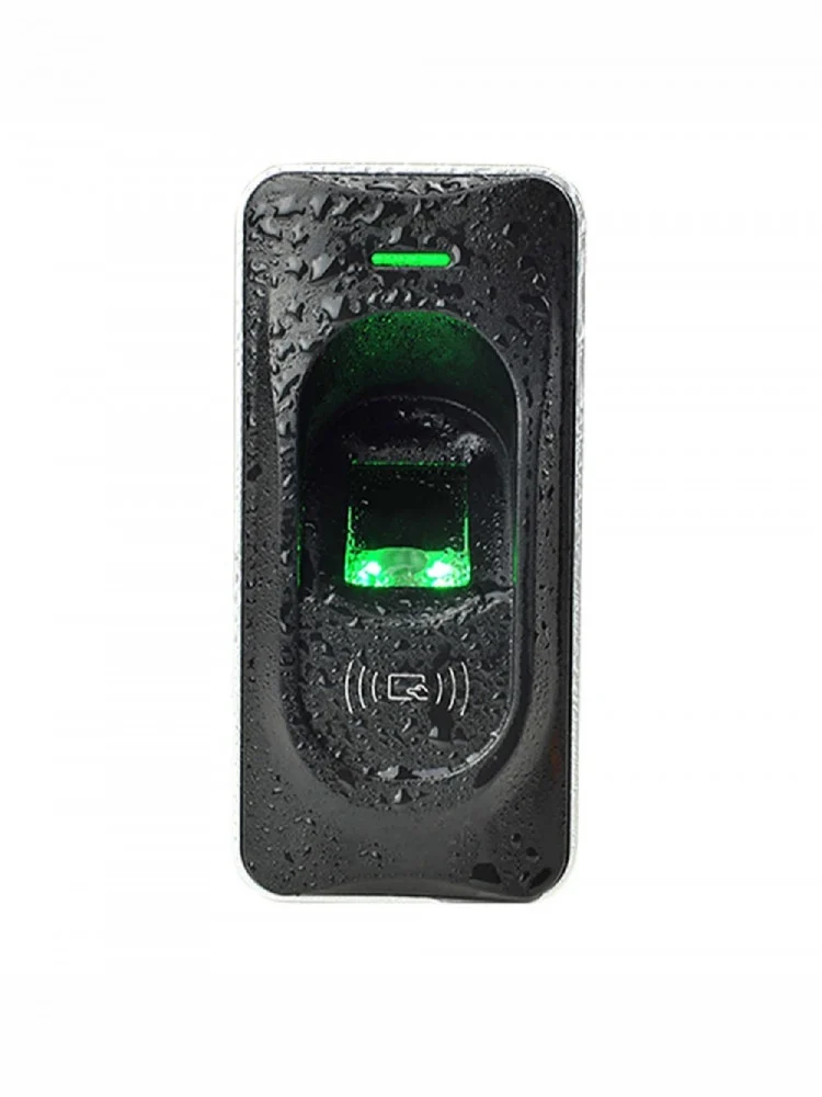 قارئ البصمة والكرت بدقه عالية للتحكم بالدخول والخروج, مع امكانية الربط مع جميع أنواع الأقفال, ويعمل بالتزامن مع لوحة التحكم بالربط عن طريق الشبكة, كما يمكن الربط مع الأبواب الدوارة أيضا.