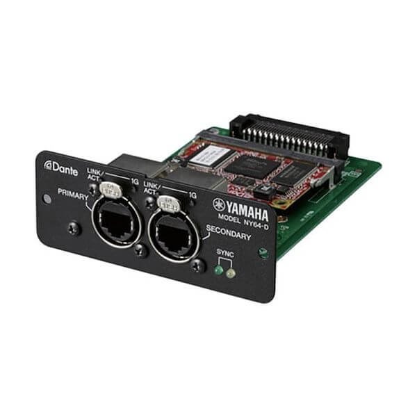 The NY64-D from Yamaha is an I/O expansion card for the TF-series console that allows transmission and reception of up to 128 channels (64 in/64 out) of uncompressed 24-bit/48 kHz digital audio data via a Dante audio network. It is also compatible with the Tio1608-D Dante-equipped I/O rack (sold separately) and with this setup, it becomes possible to create a stage-box system with up to 48 inputs and 24 outputs.Yamaha NY64-D SpecsCompatibleTF-series consolesSample Rate24-bit/48 kHzChannels128 channels (64 in/64 out)DimensionsNot specified by manufacturerWeightNot specified by manufacturer