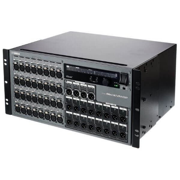 R Series (AD/DA): 2nd-generationDante-ready I/O Racks with Enhanced Sound, Reliability, and DisplaysThe Yamaha Rio3224-D2 and Rio1608-D2 are high-performance I/O Rack units with built-in Dante audio networking. Designed and manufactured to achieve outstanding sonic transparency in keeping with Yamaha’s “natural sound” philosophy, they play a vital role in supporting the performance capabilities of the associated console, offer extensive freedom for placement and multi-unit combinations, and allow redundancy for high reliability. The Rio3224-D2 and Rio1608-D2 are not only standard components of the RIVAGE PM7 Digital Mixing System, but are also fully compatible with CL and QL series digital mixing consoles, offering excellent audio and operational performance that makes the most of Dante networking potential.Rio3224-D2 I/O RackThis high-capacity, high-performance I/O rack is compatible with Yamaha CL and QL series consoles as well as the RIVAGE PM series. It features 32 analog inputs, 16 analog outputs, and eight digital AES/EBU outputs. The Rio3224-D2 connects directly to Dante digital audio networks, allowing flexible system configuration. Dual power supply units are built in for high reliability, and a character/graphic display offers easy visual confirmation. 32 analog inputs and 16 outputs, and 8 digital outputs. Redundant connections are supported with primary and secondary connectors. Daisy chain connections are also supported. Comprehensive display and local control of gain and other parameters. Power consumption: 120W Dimensions (WxHxD): 480 x 220 x 368mm (18.9 x 8.7 x 14.5) Net Weight: 13.5 kg (29.8 lbs)