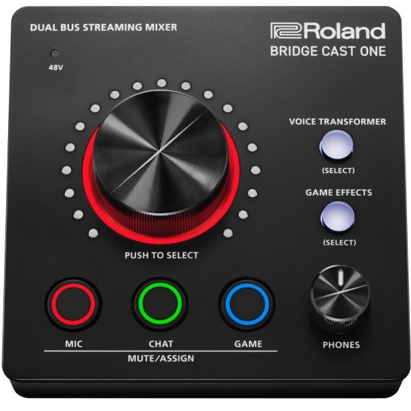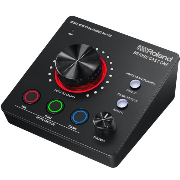 Level up your gaming and streaming sound with BRIDGE CAST ONE, a compact livestreaming audio mixer with hands-on controls. Gain a competitive advantage with powerful features like dual bus mixes, vocal transformer effects, fast-access presets, and support for a broadcast-grade mic and headphones. For even more control, the companion BRIDGE CAST app offers extended audio tools and royalty-free background music and sound effects through BGM CAST on Roland Cloud.