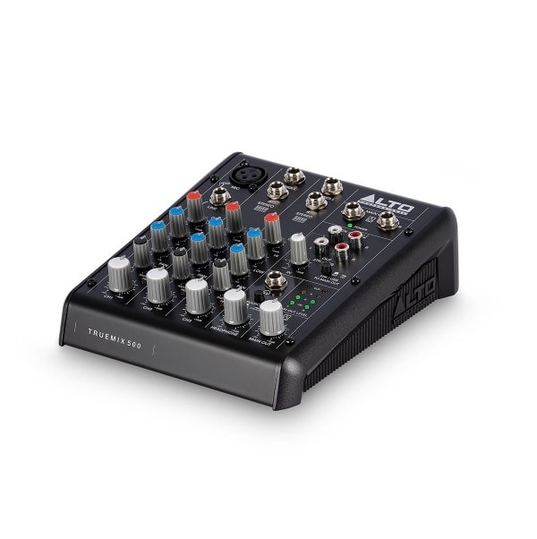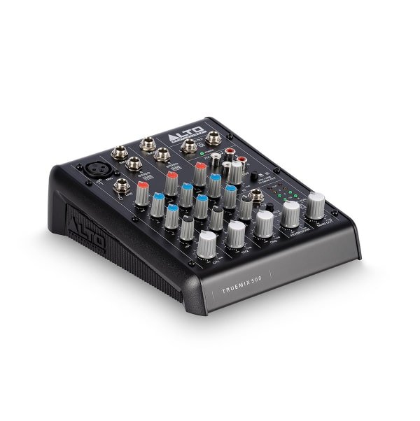 The Alto Professional TrueMix 500 is a portable mixer with a built-in stereo USB audio interface that delivers all the essential features you need for home recording, livestreaming, podcasting, or performing. There are five analog inputs with high-headroom circuitry for minimal noise and clipping in your signal. The Mic Input Channel offers an XLR input that’s great for connecting a dynamic mic. This channel also has a balanced ¼” line input for connecting instruments and other line-level signals. There are also two Stereo Input Channels, each with dual balanced ¼” TRS inputs. These inputs are perfect for your line level audio sources. All channels feature a two-band EQ with color coded knobs that make it easy to dial in your perfect sound when operating in low-light situations. Connecting the TrueMix 500 to your computer is also lightning fast, with plug and play connectivity on Windows and macOS. The TrueMix 500 is your perfect companion for no-nonsense audio mixing and recording on the go.