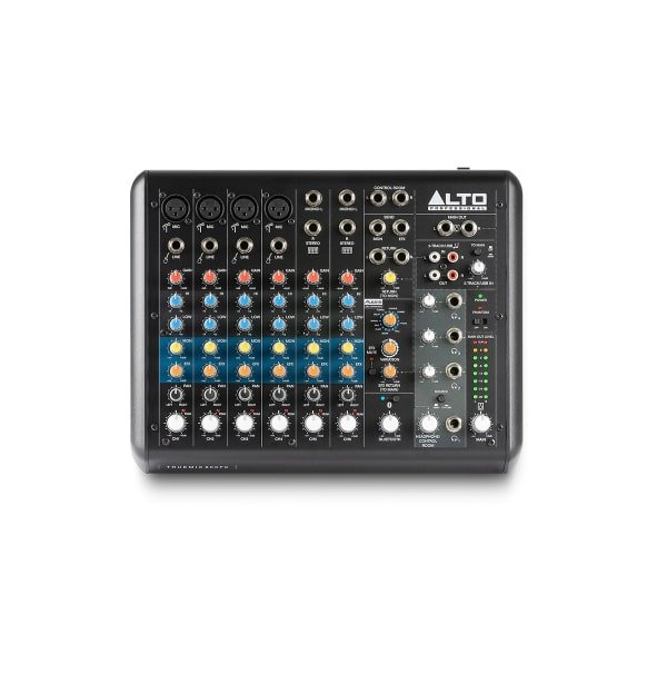The Alto Professional TrueMix 800 FX is a portable audio mixer with built-in DSP effects that delivers all the essential features you need for home recording, livestreaming, podcasting, or performing. The TrueMix 800 FX features 16 effects including chorus, flange and an assortment of high-quality delays and reverbs. There’s also a convenient Bluetooth channel for easily streaming from your personal devices. A unique feature to the TrueMix Series, the Bluetooth channel also supports feedback-free phone pairing by utilizing mix-minus technology. There are eight analog inputs with high-headroom circuitry for minimal noise and clipping in your signal. The four Mic Input Channels offer XLR inputs that are great for connecting dynamic mics or condenser mics with 48v phantom power. These channels also have balanced ¼” line inputs for connecting instruments and other line-level signals. There are also two Stereo Input Channels, each with dual balanced ¼” TRS inputs. These inputs are perfect for your line level audio sources. All channels feature a two-band EQ with color coded knobs that make it easy to dial in your perfect sound while operating in low-light situations. There are even extra knob caps included so you can fully customize the look of your TrueMix 800 FX. Connecting the TrueMix 800 FX to your computer is also lightning fast, with plug and play connectivity on Windows and macOS. The TrueMix 800 FX is a feature-packed compact audio mixer that’s perfect for using on-the-go.