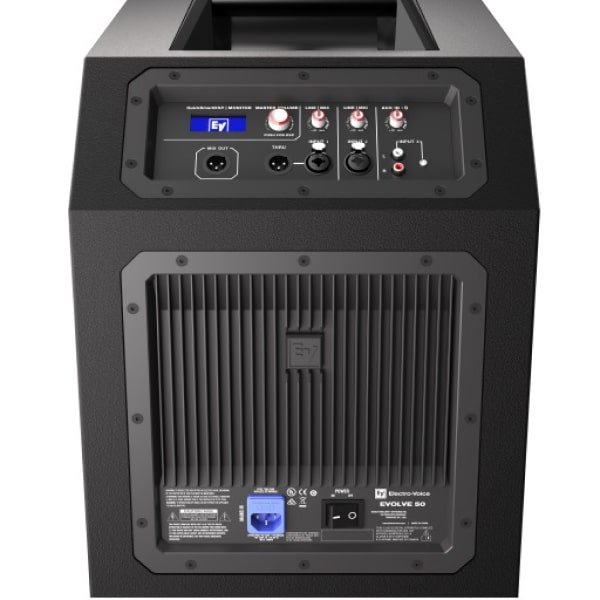 Equipped with the most comprehensive and user-friendly feature set of any column system on the market today, the EVOLVE 50M’s “M” designation refers to its integrated fully featured, fully configurable eight-channel digital mixer. Developed in collaboration with the world-class audio electronics engineering team at Electro-Voice’s sibling brand Dynacord, the mixer has multiple inputs with professional-grade preamps and mix functions. High-resolution, low-latency Bluetooth® streaming ensures excellent results for music playback or accompaniment. Independent channel aux sends and a foot switch input are also included, and a range of effects (30 presets, including chorus, delay, flange, and reverb, via two FX channels) add a myriad of options for musicians to fine-tune their tone. All of the above help reduce load-in/out and setup/teardown time – and on-stage clutter – by minimizing the need for external equipment such as a mixer and effects pedals.