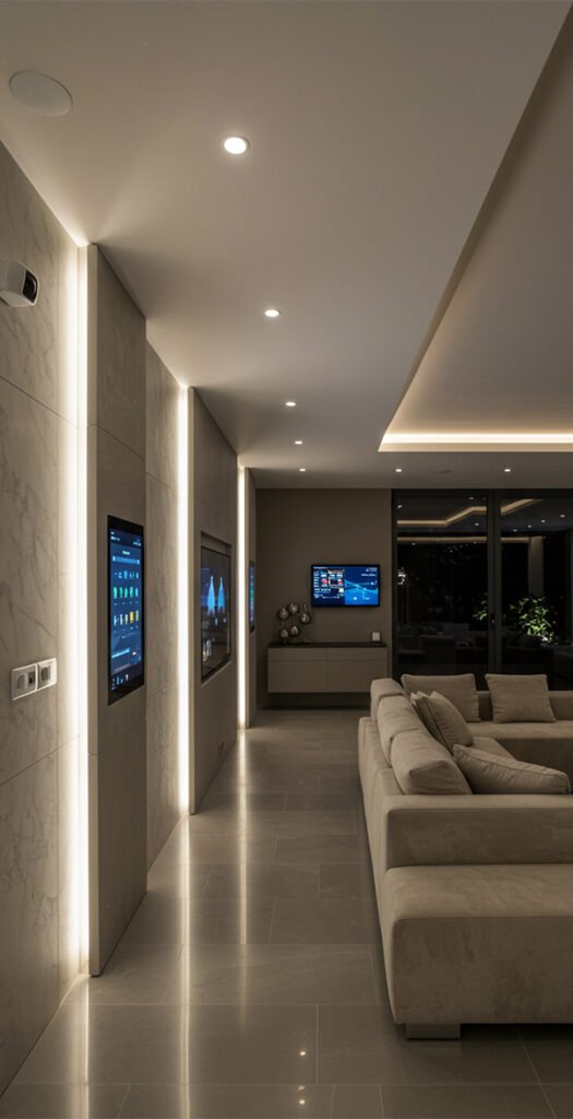 A fully automated smart lighting design that blends elegance with functionality. The project features warm and cool tones that enhance the interior experience while ensuring energy efficiency and comfort for modern living.